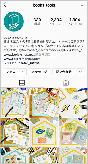 画材屋さんとして有名な「トゥールズ」もインスタグラム(books_tools)を運営。マーカーや色鉛筆など同店で扱っている画材や紙を普段使いしている投稿がなんともトゥールズらしく、参考になります。