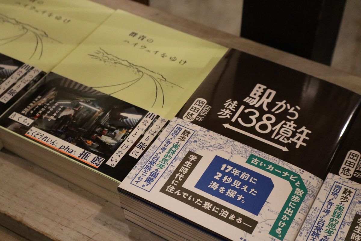 ウェブメディア「オモコロ」や自身のnoteなどで旅にまつわるエッセイを中心に人気を集め、2025年10月には『駅から徒歩138億年』(産業編集センター)を上梓した岡田悠さんと、初エッセイ『群青のハイウェイをゆけ』( hayaoki books)を刊行したきくちさんによるトークイベント「週休2日の冒険譚」が2025年11月16日(日)、「本屋イトマイ」(東京都板橋区)で開催されました。