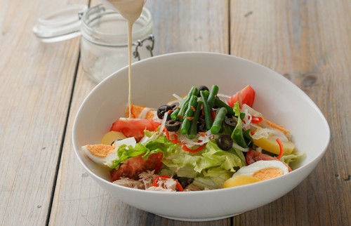 コース料理ではなく、アラカルトで楽しむのがお決まり。そこで必ずオーダーするのが自家製ツナのニース風サラダなのだそう。