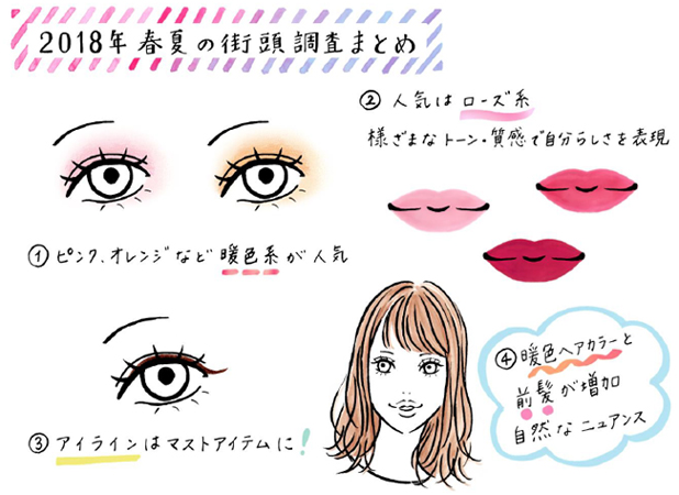 今回、2018年4月下旬に、銀座、渋谷、原宿で20~30代の女性合計300人を対象に実施された街頭調査の結果をもとに、ビューティートレンド研究チームのヘアメイクアップアーティストによる「東京の街を歩く女性たちのメイクアップとヘア傾向」の解説が報告されたのでご紹介します。