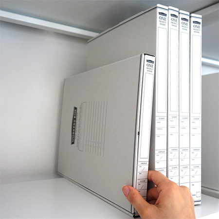 表紙に予定や進捗状況を書き込むことができるので、1プロジェクトにつき、1ボックスを使用すれば、雑多なアイテムを簡単に整理することが可能。簡易バインダーやポケットも付いているので、名刺や領収書もなくさずに済みそう。何より、このボックスを使っているとデキる人に見えそうなのがうれしいですね。
